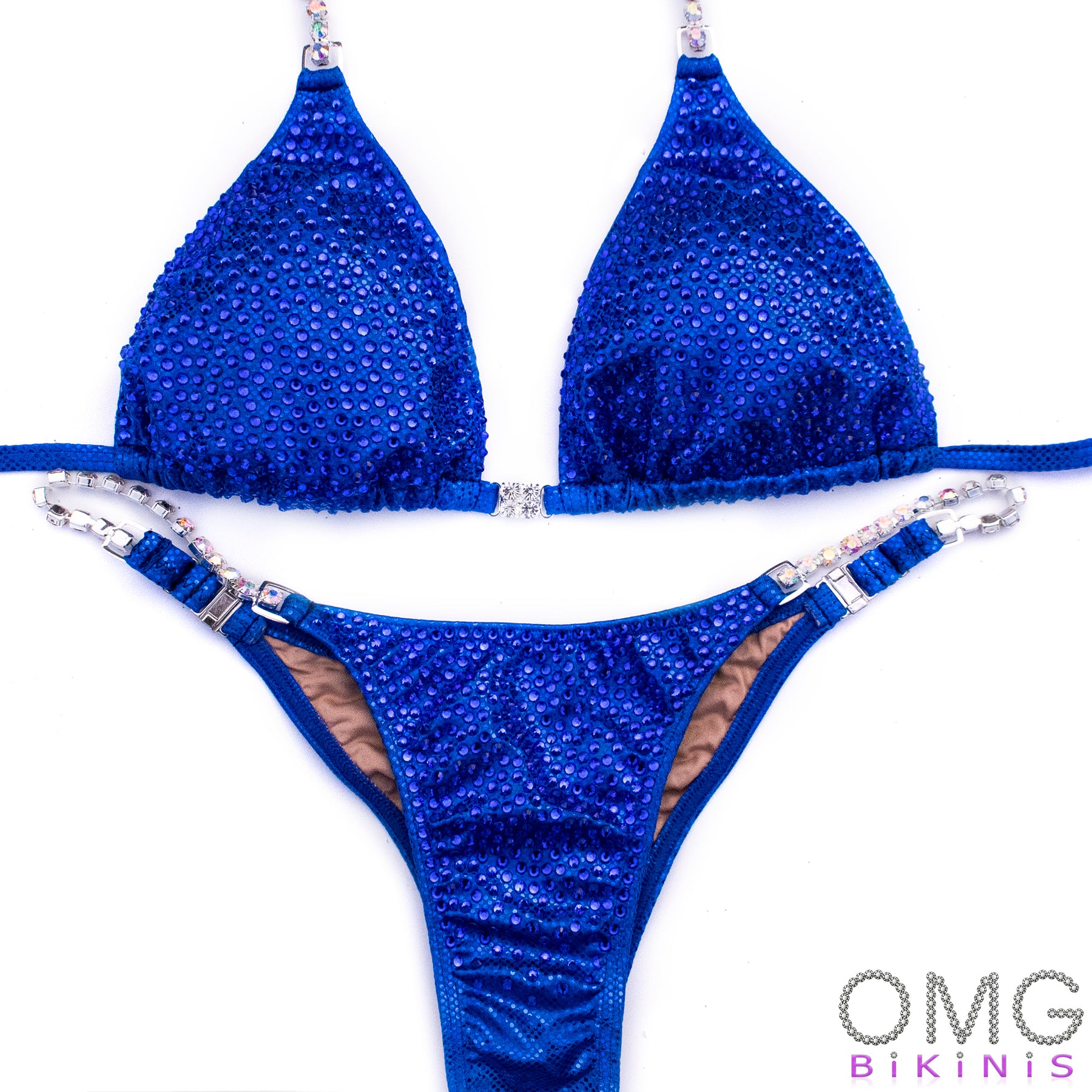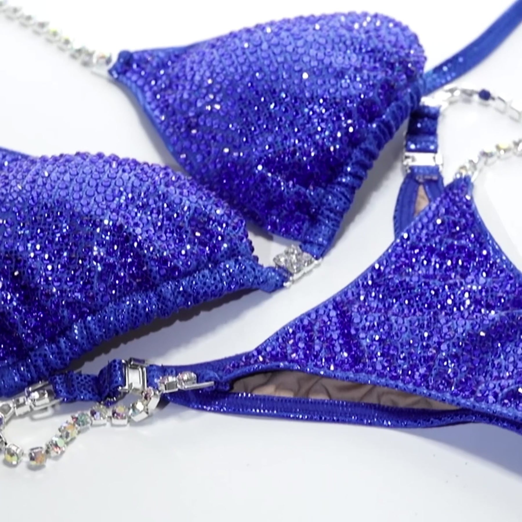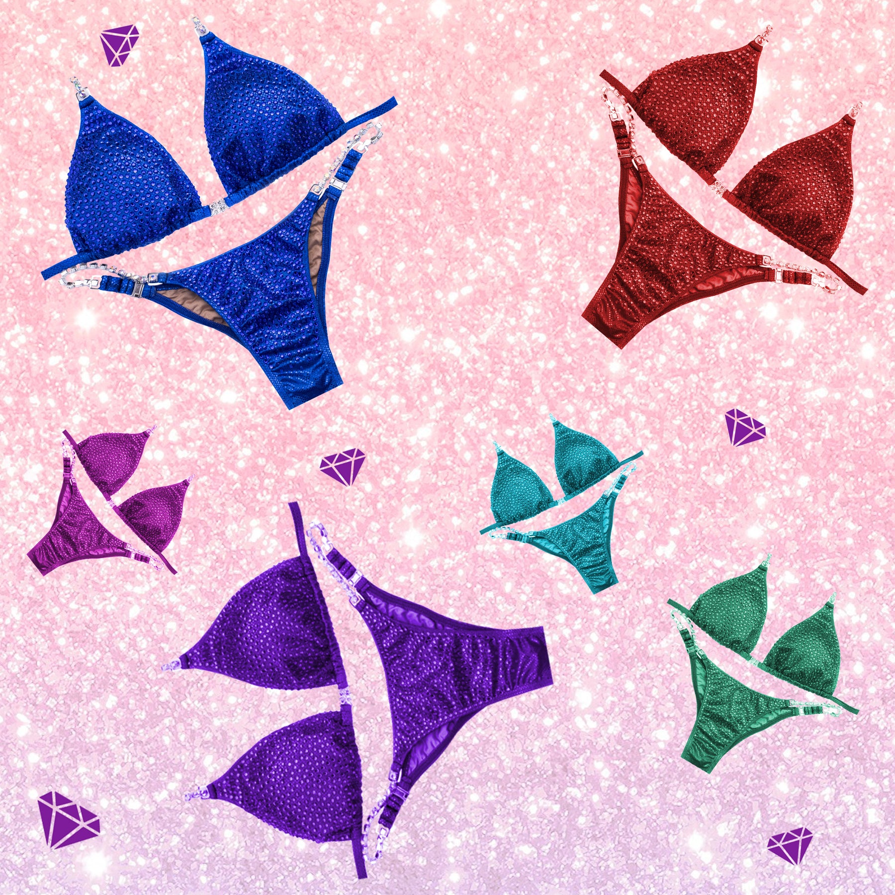 Affordable suit features a fabric of your choice bedazzled with a scatter of SS16 rhinestones of your choice. You choose one color of rhinestones based on your fabric color selection. Rhinestones will be evenly scattered on the fabric with some spacing between them creating solid color and sparkly look. If you're not sure how fabric and rhinestones will look together, we recommend getting swatches and samples before ordering.