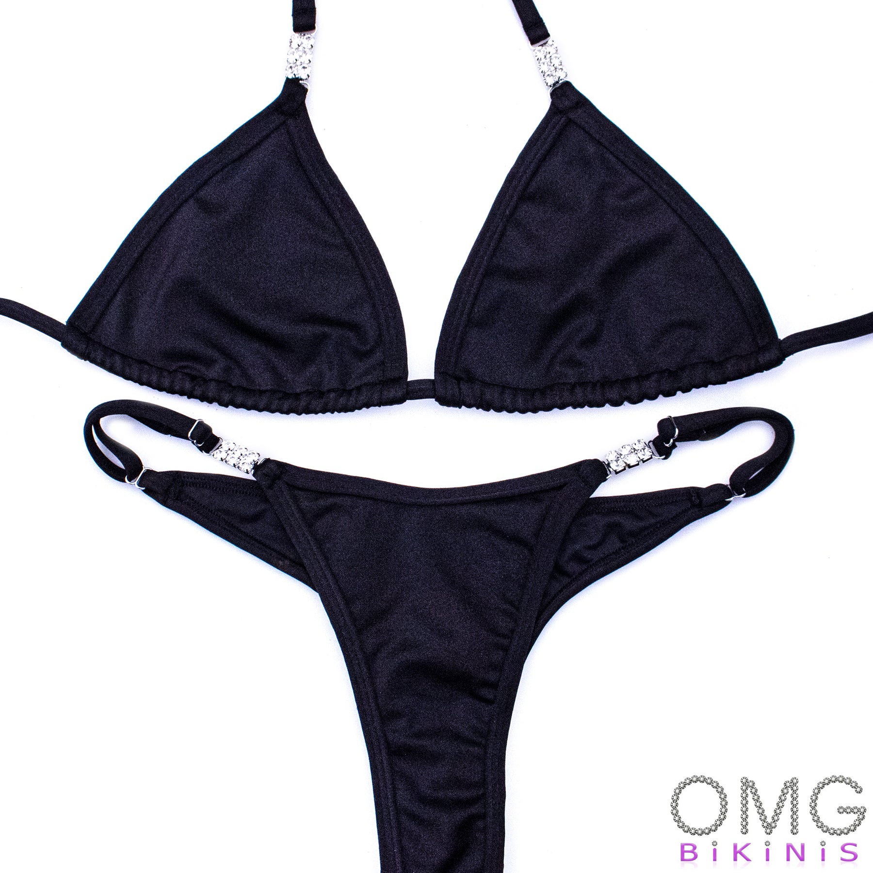 Posing Suit with 4 crystal connectors, made of high-quality spandex material, has full lining, pockets for extra padding, pro cut bottoms with side sliders. No adjustments can be made on this suit as it is premade and ready to ship. If you in a rush to get a posing suit, this is the perfect option!