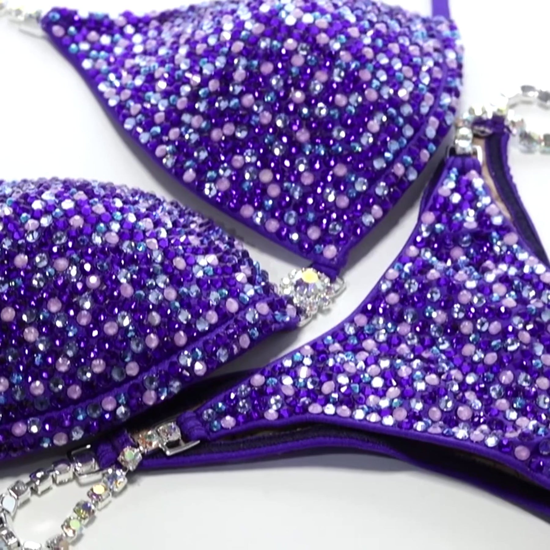 Purple Blue Matte fabric encrusted with combo of Purple, Light Sapphire, Sapphire AB and Lilac Opal rhinestones, has full lining and pockets for extra padding. Extra padding is included in your order.
