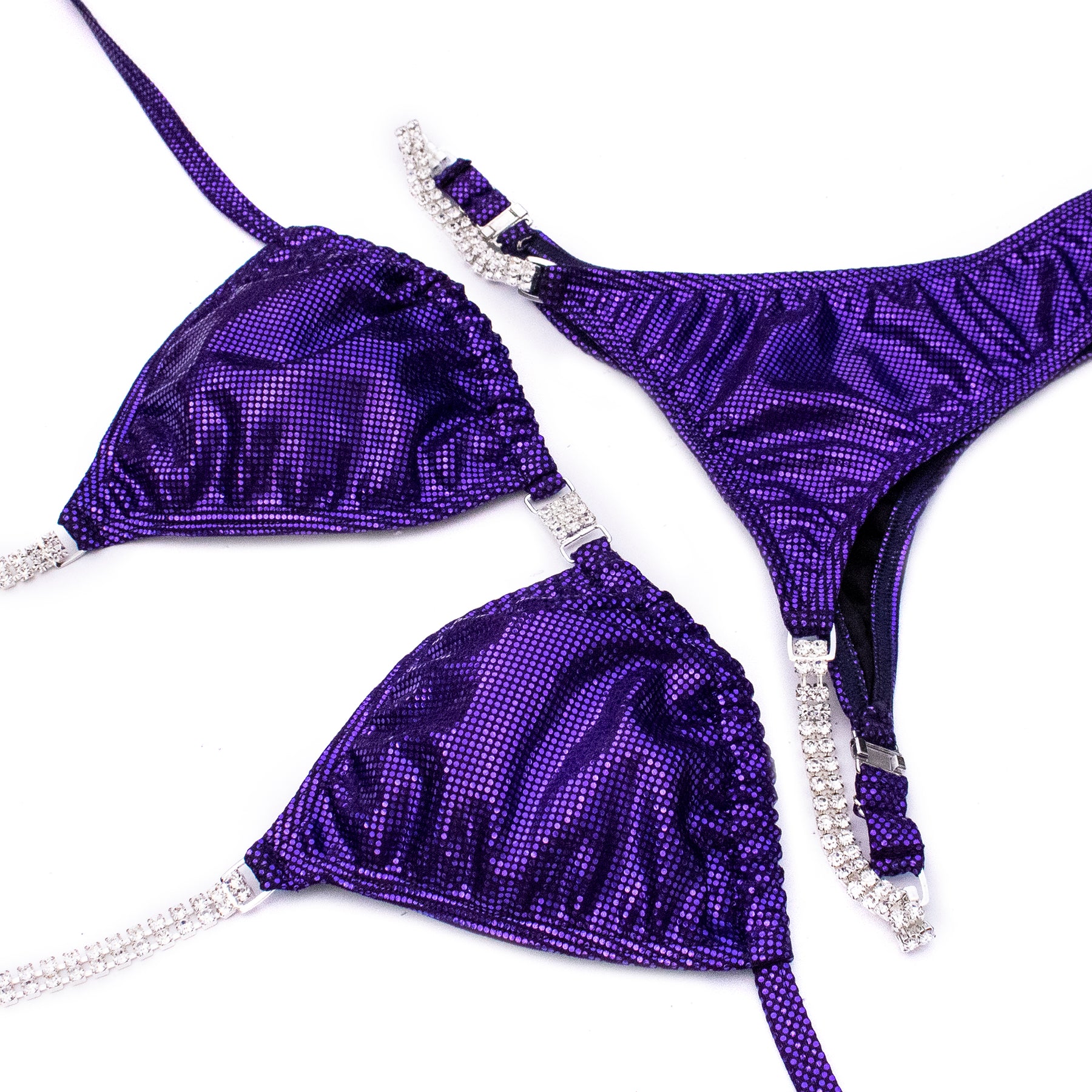 Competition Suit base made out of high-quality spandex material, has full lining, pockets for extra padding, pro cut bottoms with side closures. Suit is perfect to be use as a posing suit or as a base for DIY bedazzling. No adjustments can be made on this suit as it is premade and ready to ship.