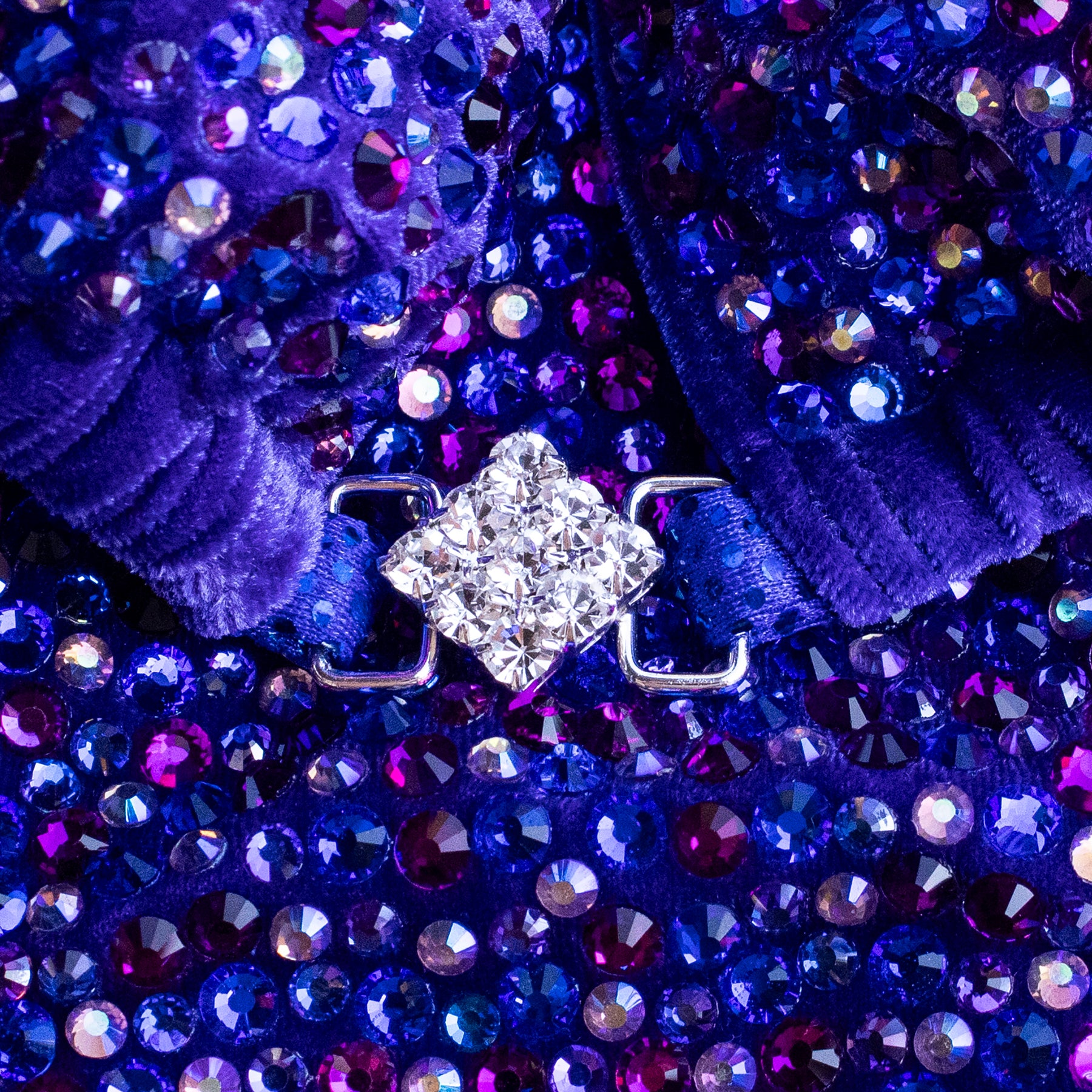 Light Purple Velvet encrusted with combo of Purple, Sapphire, Purple Velvet and Light Amethyst AB rhinestones, has full lining and pockets for extra padding. Extra padding is included in your order.