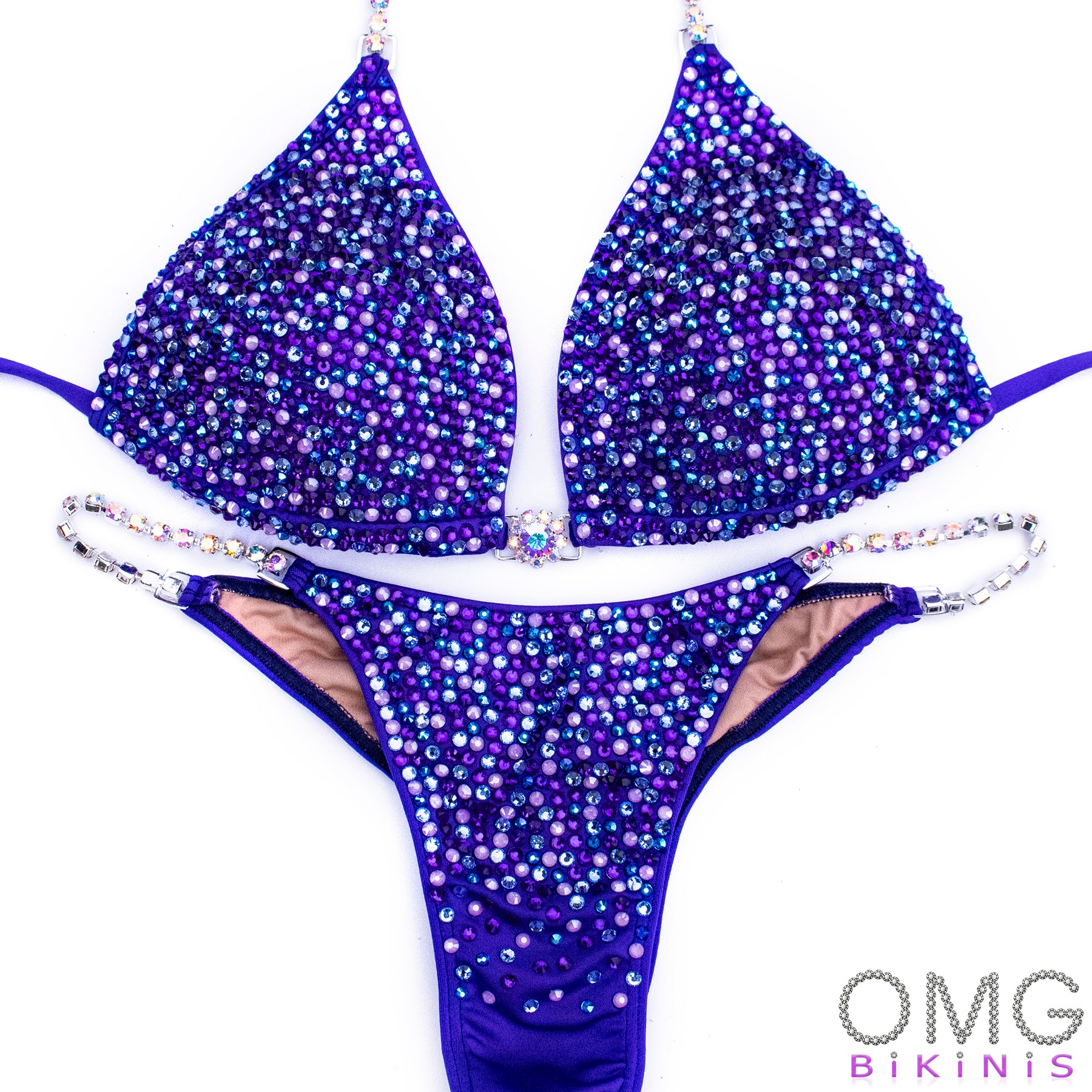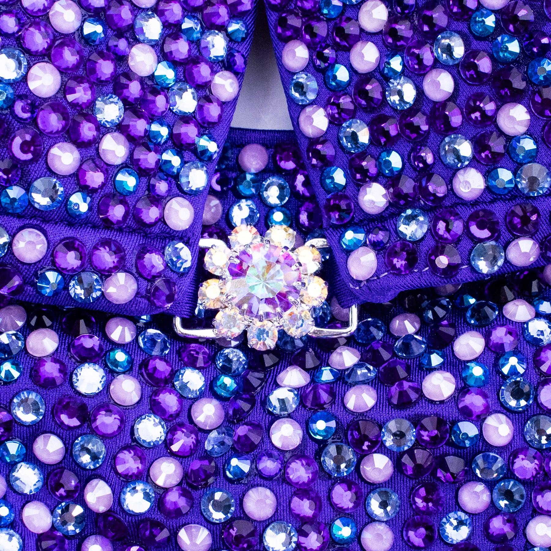 Purple Blue Matte fabric encrusted with combo of Purple, Light Sapphire, Sapphire AB and Lilac Opal rhinestones, has full lining and pockets for extra padding. Extra padding is included in your order.