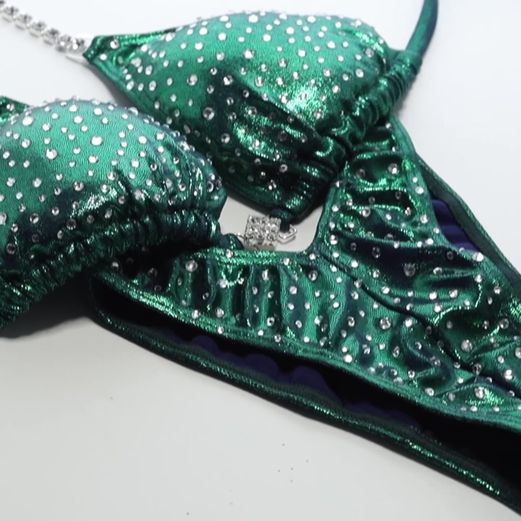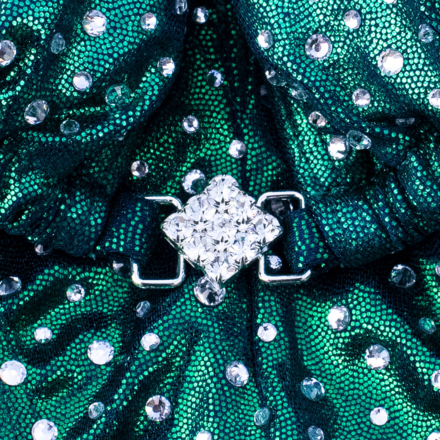 Holographic Fabric of your choice bedazzled with a light scatter of clear crystals.